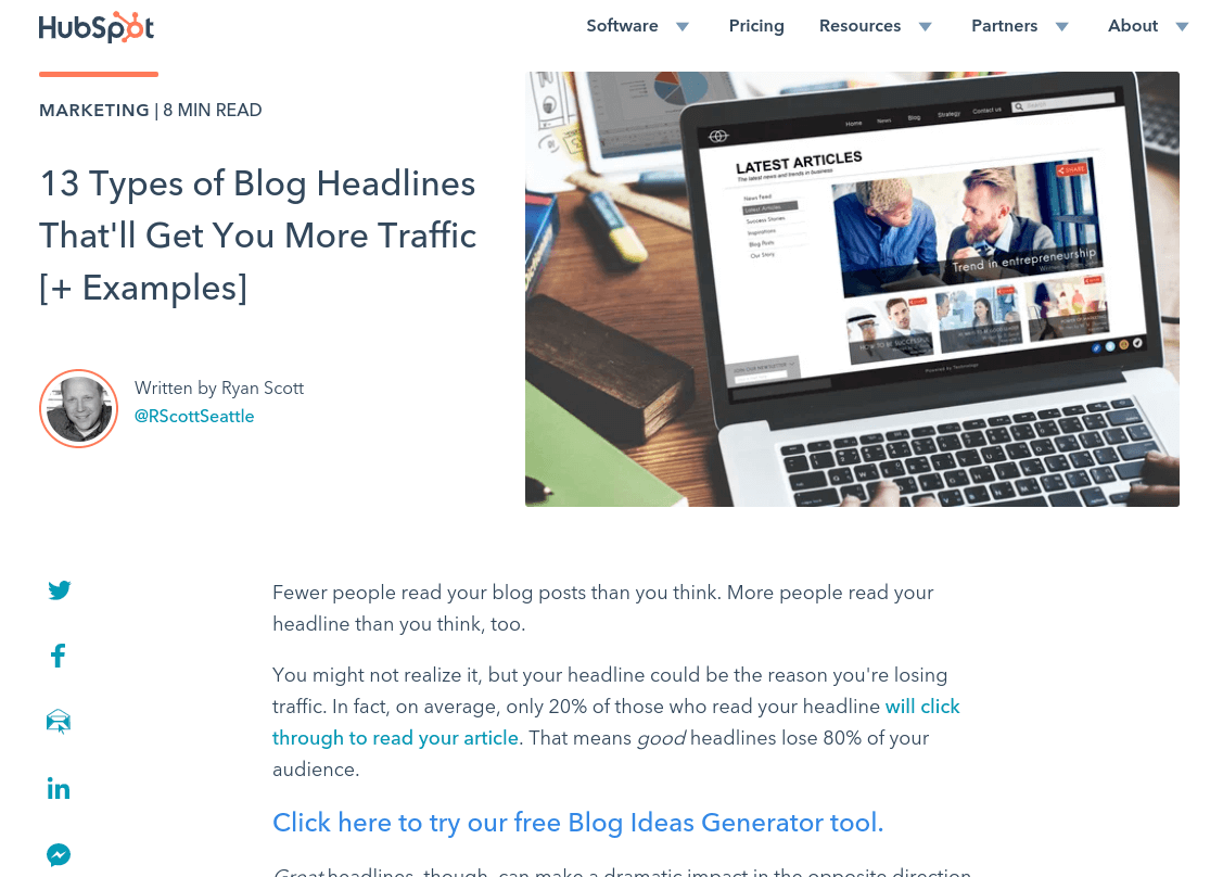 Si vous débutez dans le marketing de contenu, un point de départ simple consiste à ajouter un blog à votre site Web. Prenez HubSpot, par exemple. Ils publient un volume important de messages utiles et bien formatés :