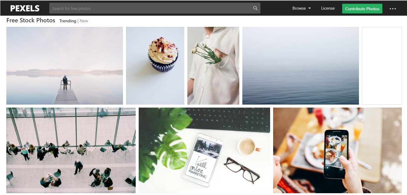 Pexels réunit environ 40 000 photos gratuites ainsi que des vidéos (et plus en Full HD) provenant de différentes banques d'images (Pixabay, Little Visuals, entre autres). Cada mes se anaden 3.000 fotos en alta resolucion que comparten la licencia Creative Commons – CC0, es decir, que pueden ser usadas de manera gratuita para fines peresonales y comerciales, asi come ser modificadas, copiadas y distribuidas. Pueden usarse en redes sociales sin problema y no es obligatorio incluir el credito de la imagen aunque hacerlo es visto como una buena accion.
