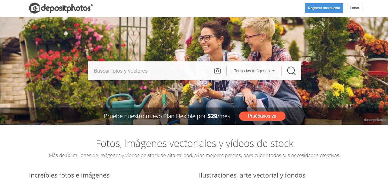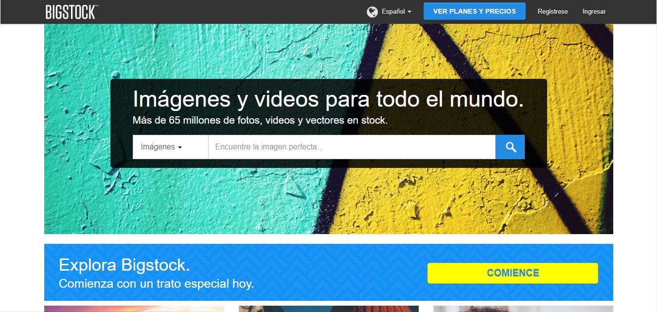 Plus de 65 millions de photos, vecteurs et vidéos que se regroupent en catégories ou tambien bajo palabras claves. Este banco de imagenes es una marca registrada de Shutter Stock y requiere suscripcion. Sus precios resultan bastante accesibles y permite elegir entre varios planes dependiendo necesidades y presupuestos que arrancan desde US$58 mensual, una semana gratis y la descarga de 150 images mensuales o 5 descargas al dia.