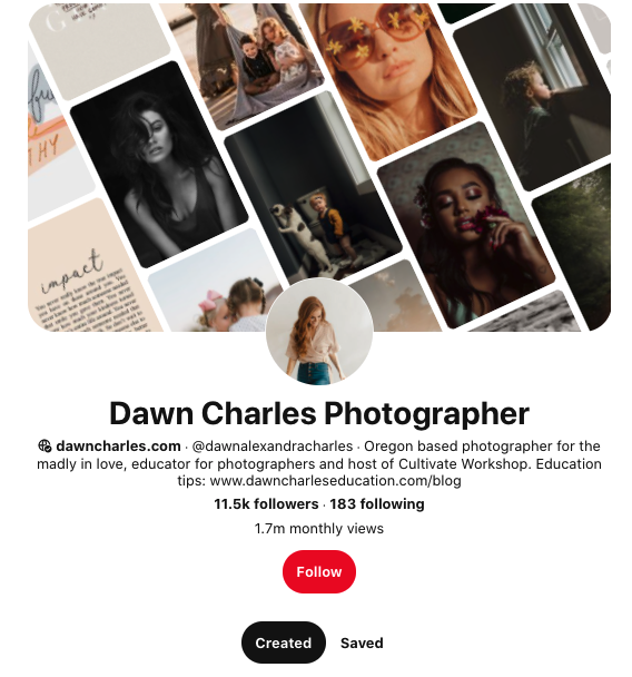 Passez du temps à configurer et à optimiser vos tableaux en fonction de votre point fort en photographie. Le moyen le plus simple d'avoir des idées à ce sujet est de jeter un œil aux autres photographes de votre créneau sur Pinterest !