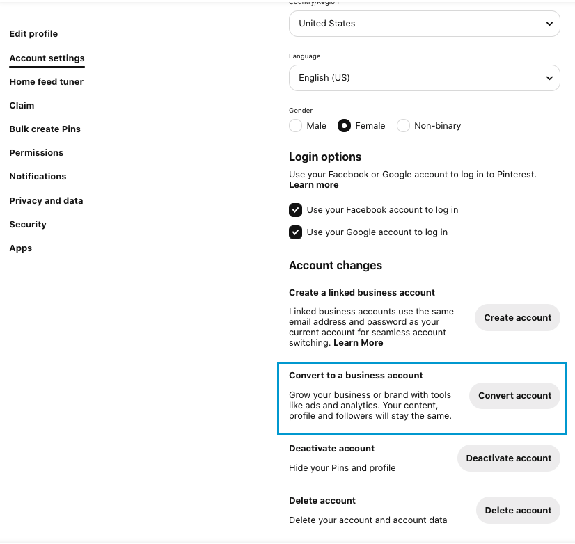 Si vous êtes déjà un utilisateur de Pinterest, la première chose que vous devez faire, si ce n'est pas déjà fait, est de transformer votre compte personnel en compte professionnel Pinterest.