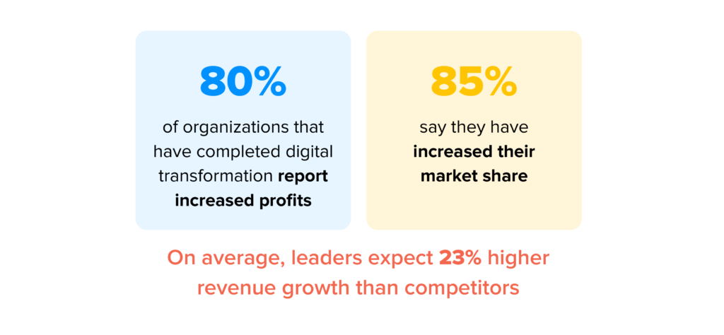 - Augmentation des bénéfices : les entreprises qui subissent DX améliorent leur rentabilité. Parlons des résultats rapportés par le SAP Center for Business Insights et Oxford Economics :