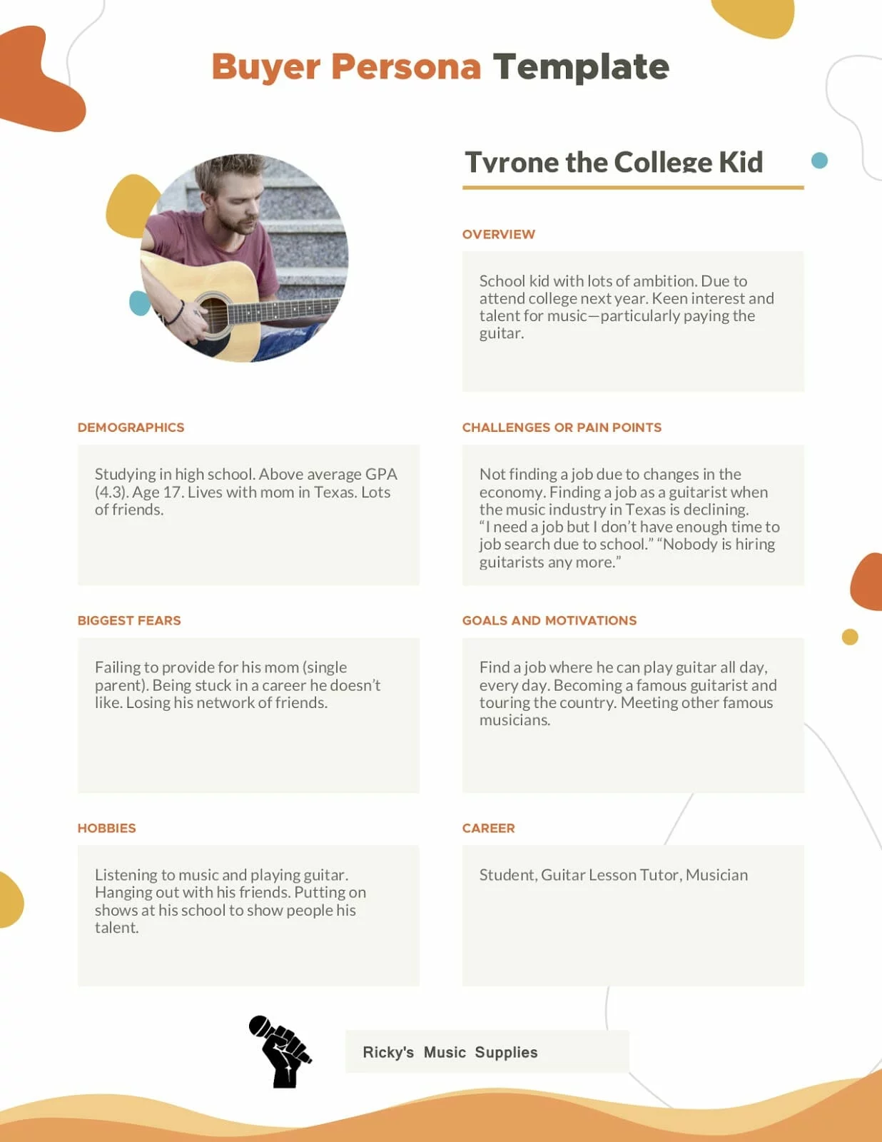 Vous trouverez ci-dessous un exemple de modèle des éléments qui composent un profil de personnalité d'acheteur bien pensé :