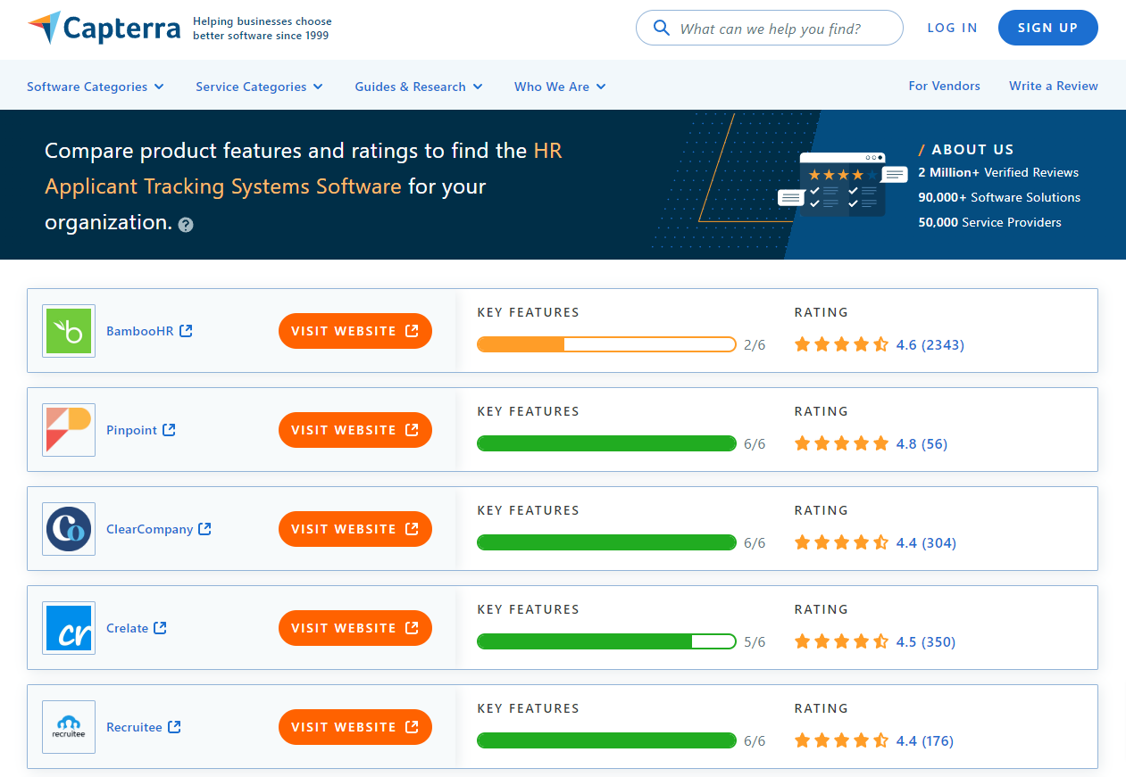 - Sites agrégateurs de logiciels. Les sites d'évaluation SaaS, comme Software Advice, Capterra, G2 et GetApp, organisent les meilleures solutions SaaS en groupes en fonction de certains paramètres. Il vaut la peine de réfléchir à la manière dont le placement sur l’un de ces sites peut profiter à votre marque. Un signe que cela pourrait être l’endroit idéal pour positionner votre marque est de savoir si vos concurrents sont présents sur l’un d’entre eux.