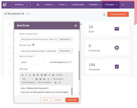 EngageBay vous aide à personnaliser vos e-mails pour les meilleurs taux de réponse
