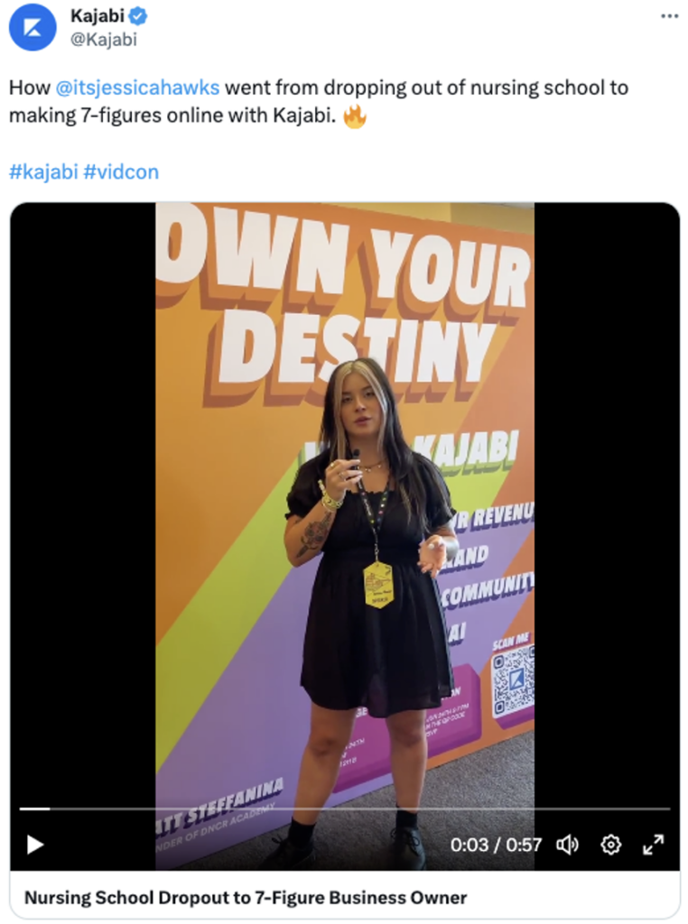 Kajabi partage souvent des témoignages captivants sur la façon dont les gens ont utilisé la plateforme pour lancer des entreprises florissantes. Dans la vidéo ci-dessous, la coach d'affaires Jessica Hawks explique comment elle a créé une entreprise de produits numériques à sept chiffres avec Kajabi.