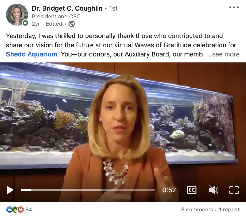Faire appel à des experts internes peut également vous donner accès à de nouveaux domaines de votre entreprise. Par exemple, lorsque je gérais les médias sociaux au Shedd Aquarium, les soigneurs pouvaient se rapprocher beaucoup plus de certains animaux que moi. Je me suis donc appuyé sur eux pour m'envoyer du contenu, comme cette vidéo aux plus de trois millions de vues.