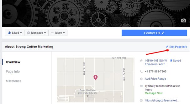 Donc, si vous n'avez pas encore de page Facebook, vous devez en créer une et vous devez remplir les informations de localisation appropriées. Vous n'êtes pas obligé d'utiliser vraiment la plate-forme – même si je vois très peu de raisons de ne pas le faire alors qu'il s'agit toujours de la plus grande plate-forme au monde – mais vous devez la créer.