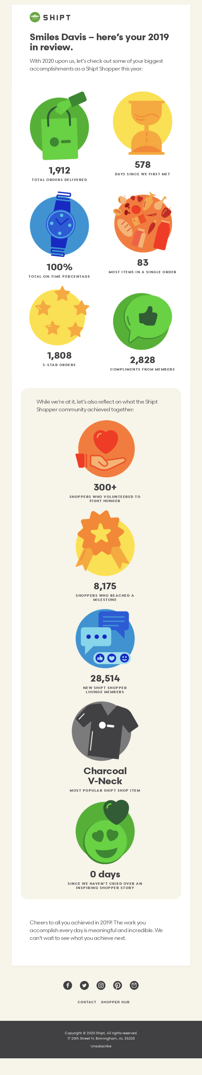 Shipt fait un travail incroyable avec ceci dans son e-mail de revue de l'année :