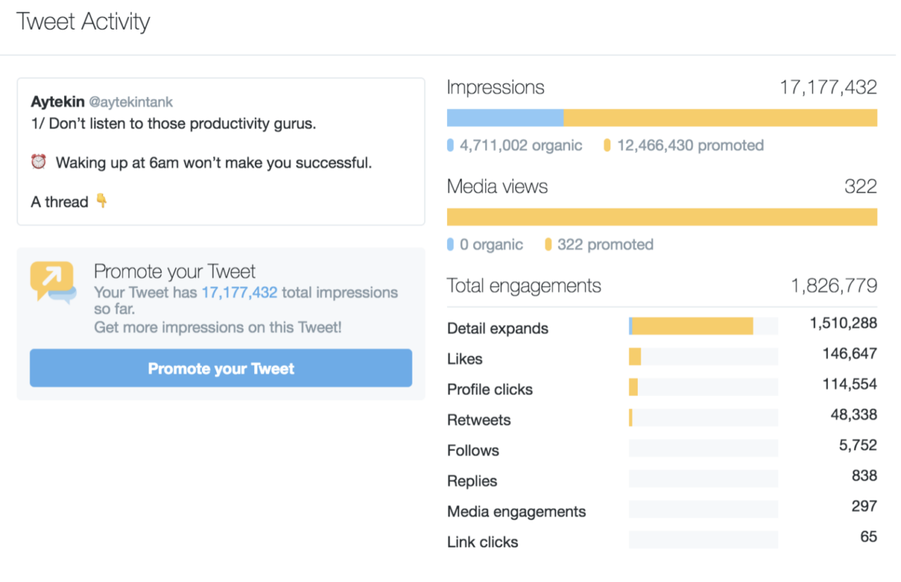 Twitter est sans doute surtout reconnu pour sa viralité, qui présente un potentiel important pour les entreprises cherchant à élargir rapidement leur audience. Un tweet peut devenir viral en quelques heures grâce aux millions d'utilisateurs actifs de la plateforme s'il touche le bon groupe de personnes et attire leur attention :