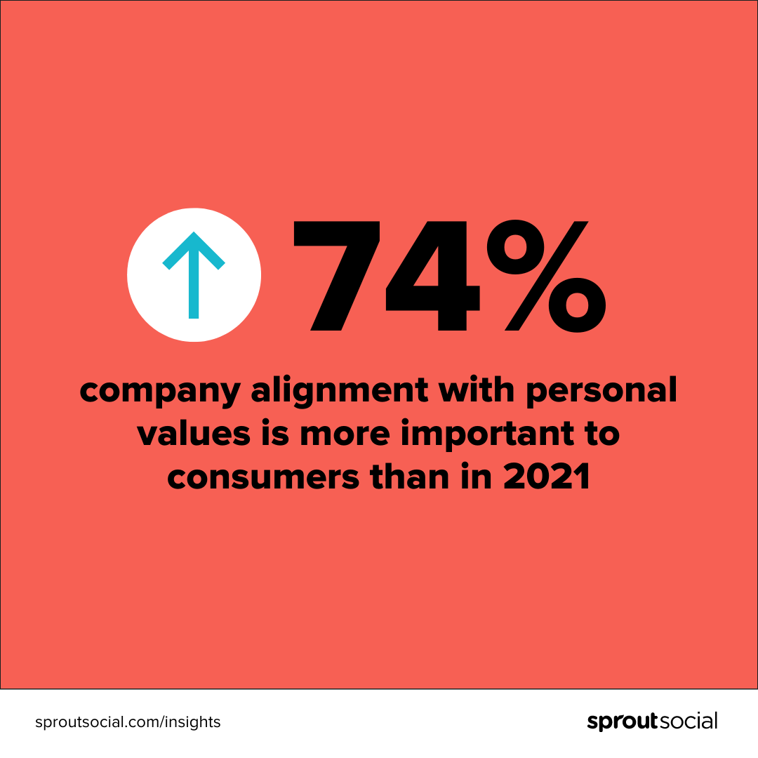 Les données du Sprout Social Index montrent que l'alignement de l'entreprise sur les valeurs personnelles est 74 % plus important pour les consommateurs qu'il ne l'était en 2021.