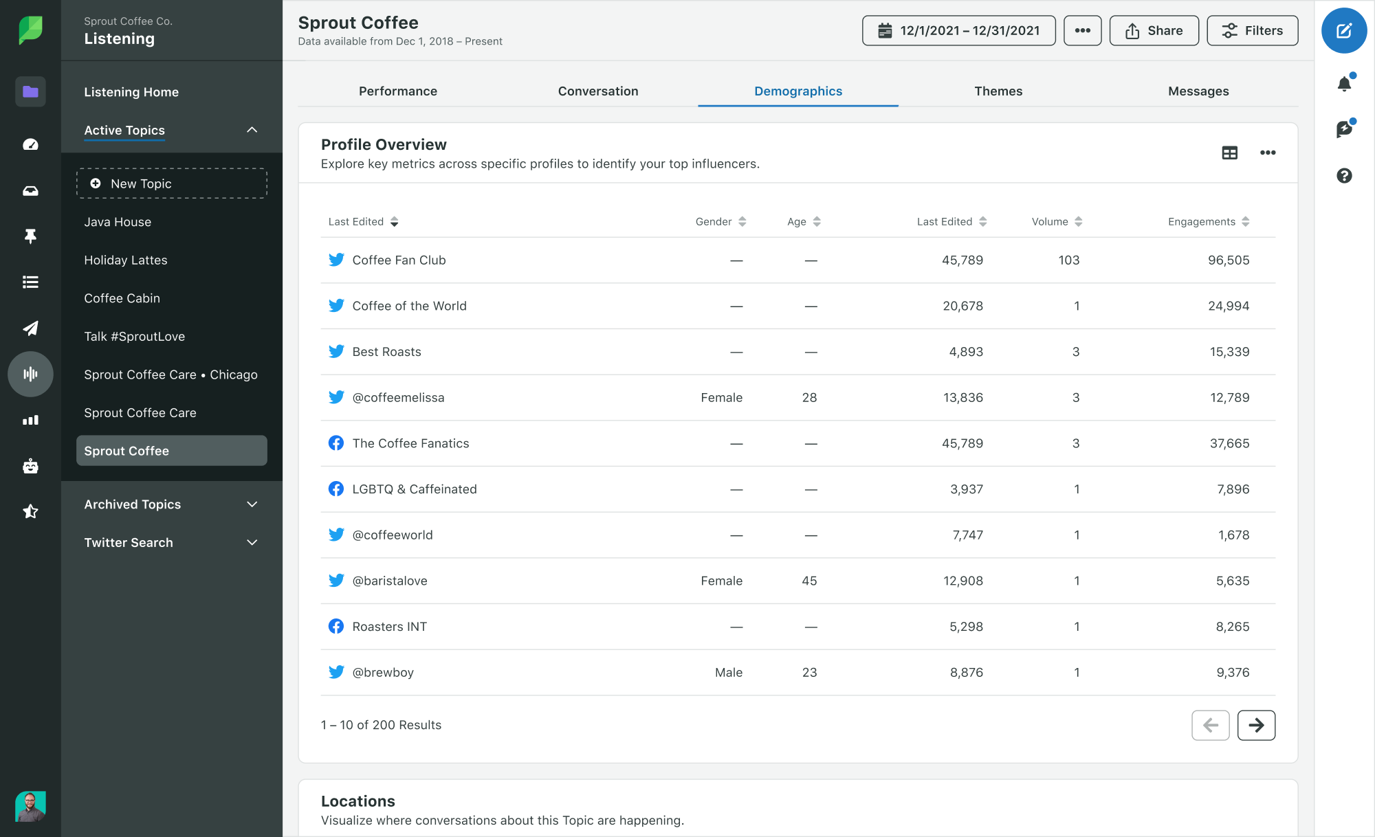 Ce qu'il y a de bien avec les vidéos de plaidoyer, c'est que les clients n'ont pas l'impression qu'on leur vend quoi que ce soit. Capitalisez sur l'amour naturel et authentique pour votre marque et votre produit en utilisant des outils d'écoute sociale comme ceux de Sprout Social. Avec l'écoute, vous pouvez rencontrer le moment et capturer les mentions de marque à partir de profils engagés, et vous pouvez afficher le contenu généré par les utilisateurs.