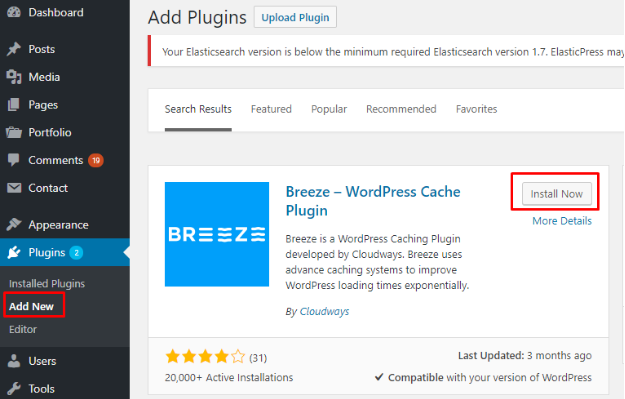 Installer Breeze — Plugin de cache WordPress gratuit