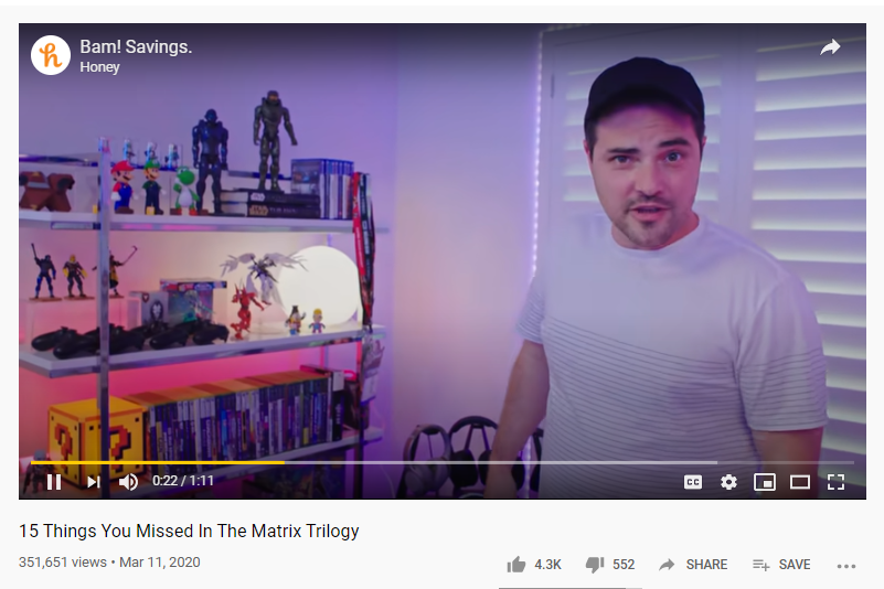 Comme son nom l'indique, il s'agit d'annonces non désactivables diffusées avant, pendant ou après la vidéo choisie. Ils durent généralement 15 à 20 secondes, ce qui vous donne plus de liberté pour faire passer votre message. Voici un exemple d'annonce InStream non désactivable de Honey.