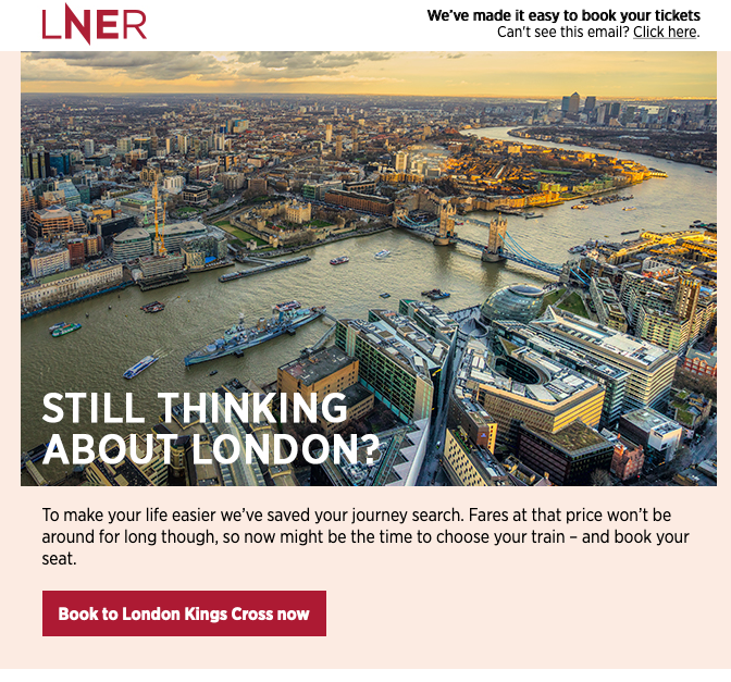 Jika Anda tidak memiliki tawaran untuk diberikan, Anda setidaknya dapat menciptakan rasa urgensi—dan itulah yang dilakukan dengan sempurna oleh London North Eastern Railway (LNER) di sini.