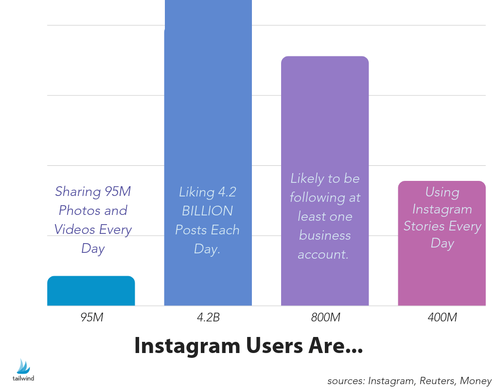 Mereka berbagi foto dan video (tentu saja!). Pada tahun 2016 (saat jumlah pengguna hanya setengah), Instagrammer membagikan lebih dari 95 juta foto dan video setiap hari!