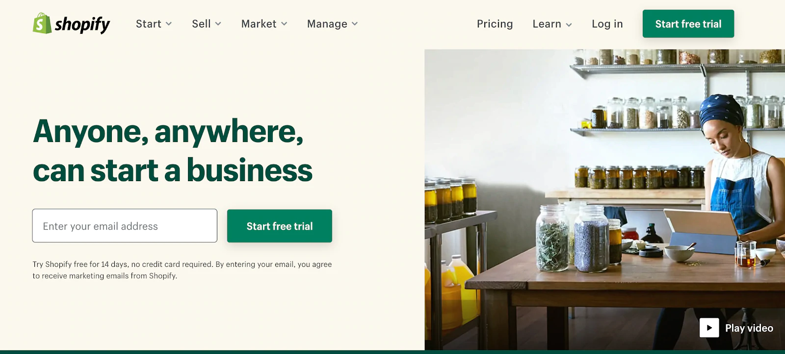Desain yang mudah. Membangun toko e-niaga Anda sendiri itu mudah, terutama dengan platform seperti Shopify. Cukup pilih desain toko dari ratusan opsi, buat penyesuaian apa pun yang Anda inginkan, tambahkan produk Anda, dan sambungkan gateway pembayaran dan Anda siap bekerja. Bergantung pada jenis toko online yang ingin Anda buat, Anda berpotensi dapat melakukan semua ini dalam satu hari.