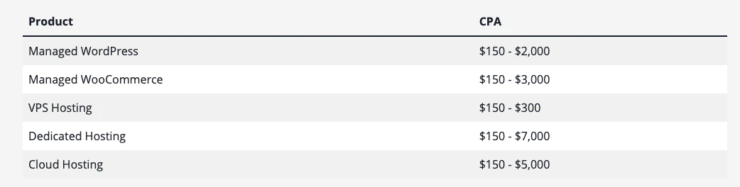 Commission rate: Liquid Web has one of the highest commission rates. 150% commission, with a minimum of $150 and a maximum of $7,000. For example, if you refer a $29 managed WordPress customer, you'll receive the minimum $150 commission, and if you refer a $400/month dedicated customer, you'll receive 150% commission on that, bringing your commission to $600 for the sale. There is also a 50% bonus commission for pre-paid plans.