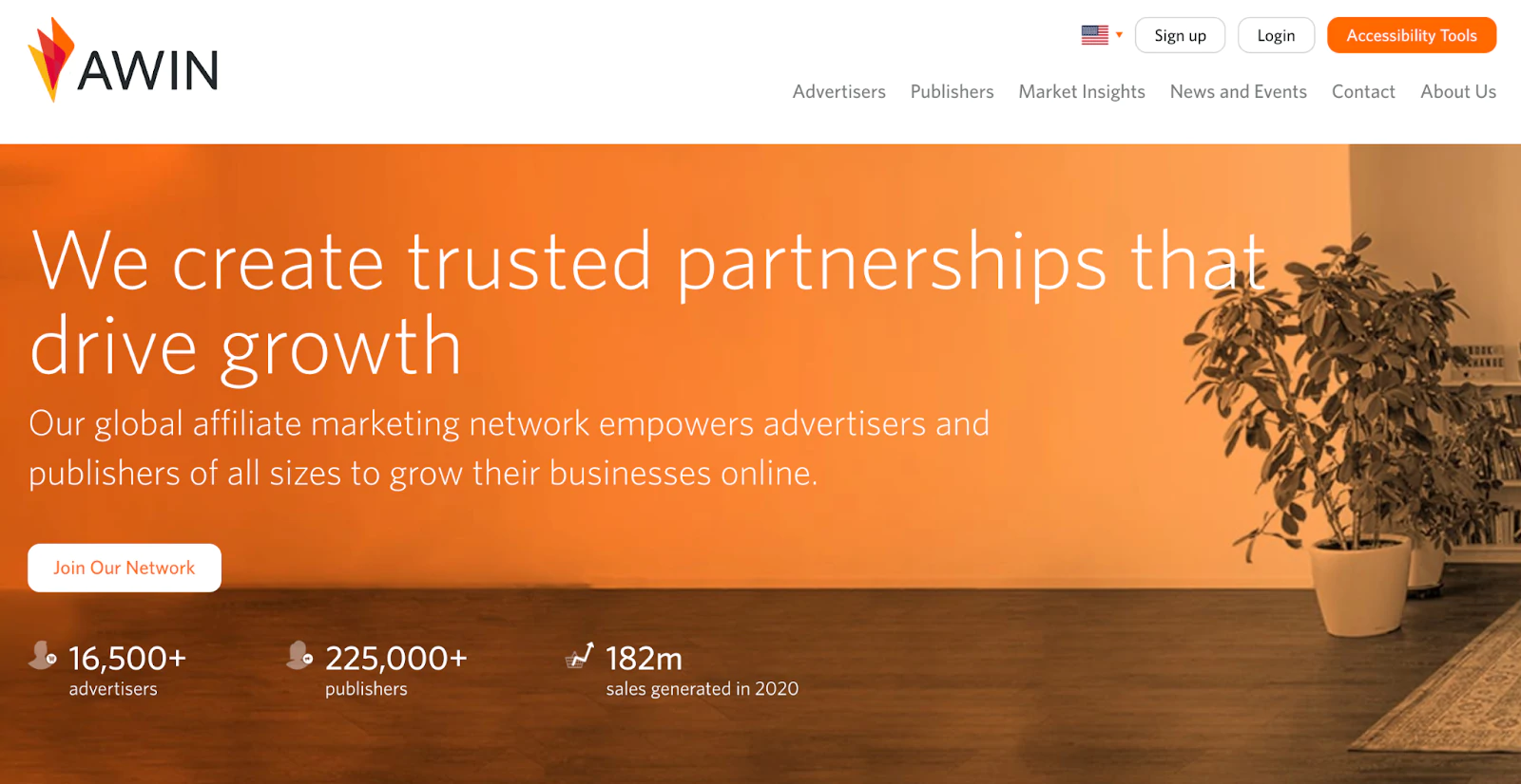 awin adalah jaringan afiliasi terkenal lainnya. Ini menyediakan akses ke lebih dari 14.600 pengiklan, termasuk merek terkenal dan nama rumah tangga. Melalui direktori pengiklan Awin, Anda dapat mencari program apa pun yang ingin Anda ikuti, atau menghubungi seseorang dari merek tersebut untuk mendiskusikan kemitraan.