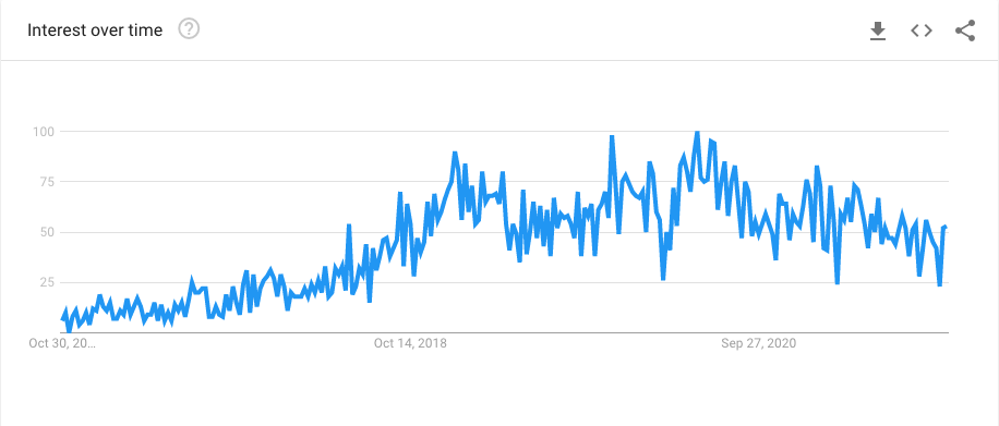 Topik Meledak menunjukkan kata kunci ini telah mengalami pertumbuhan 186% dalam volume pencarian selama lima tahun terakhir – dan trennya meningkat.