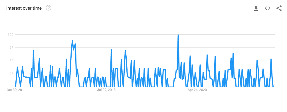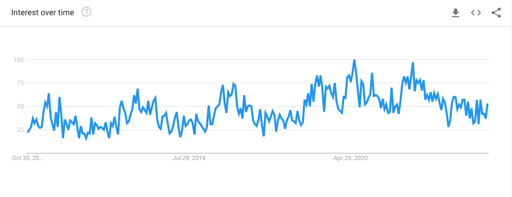 Dengan Google Trends, Anda dapat melihat seberapa baik kinerja kata kunci dalam satu jam terakhir atau melihat seberapa baik kinerjanya sejak 2004, dengan beberapa referensi di antaranya – dari 30 hari terakhir, 90 hari, 12 bulan, atau lima bertahun-tahun.