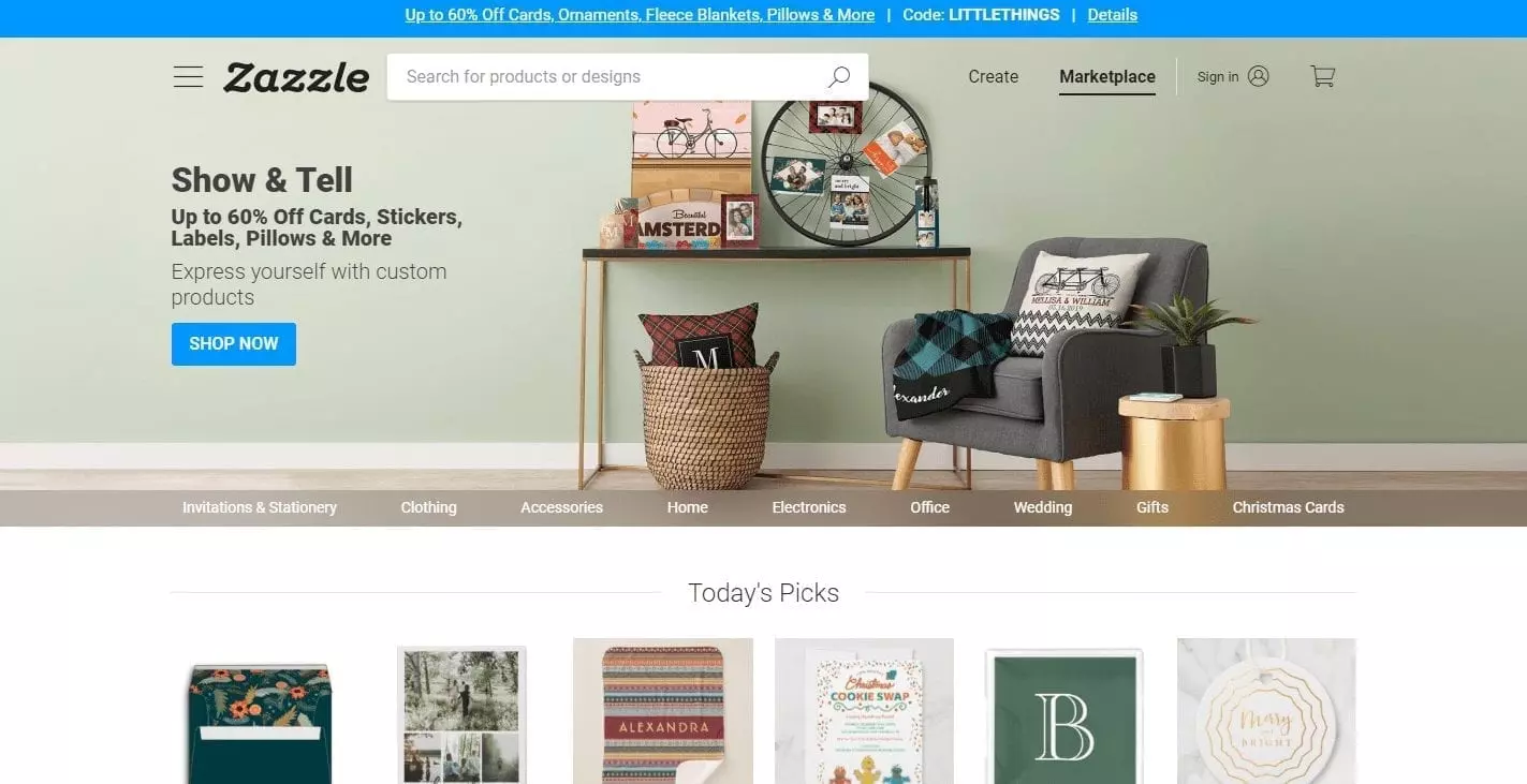 Jika Anda mencari opsi penjualan kreatif di mana Anda dapat menjual di situs Anda sendiri, Zazzle adalah dia!