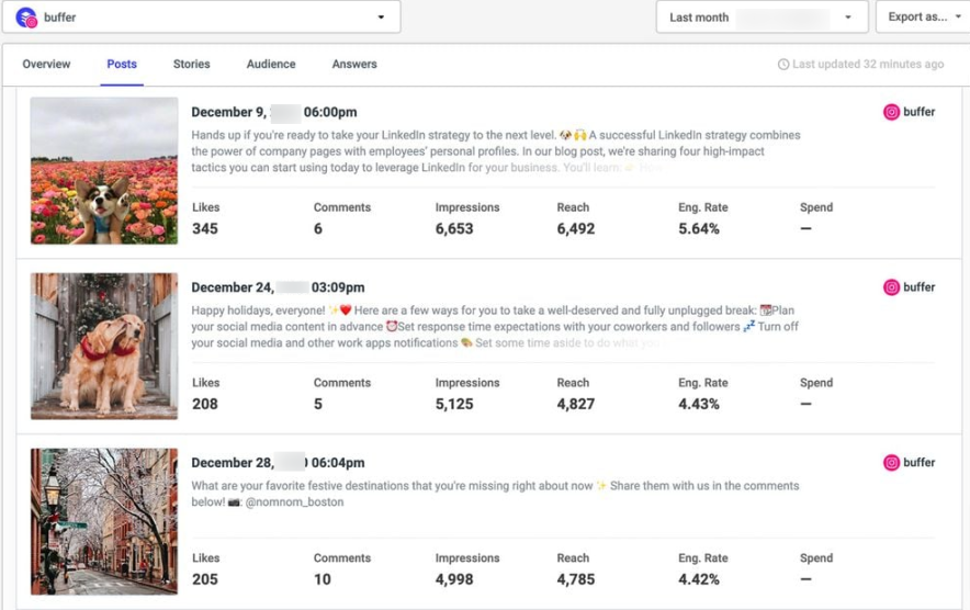 Lacak dan analisis analitik Instagram Anda. Lihat apa yang TERBAIK untuk Anda dalam hal keterlibatan pengguna. Lakukan lebih dari apa yang berhasil.