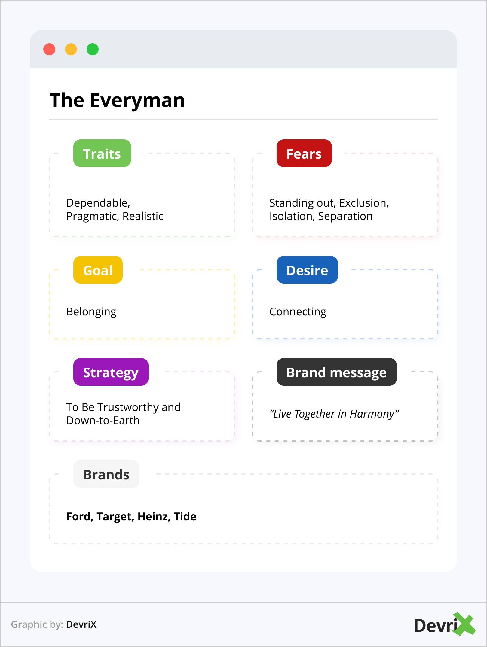 The Everyman (juga dikenal sebagai Regular Guy) adalah pola dasar merek yang mencari kepemilikan dan koneksi. Itu diakui sebagai setia, mendukung, didekati, dan membumi.