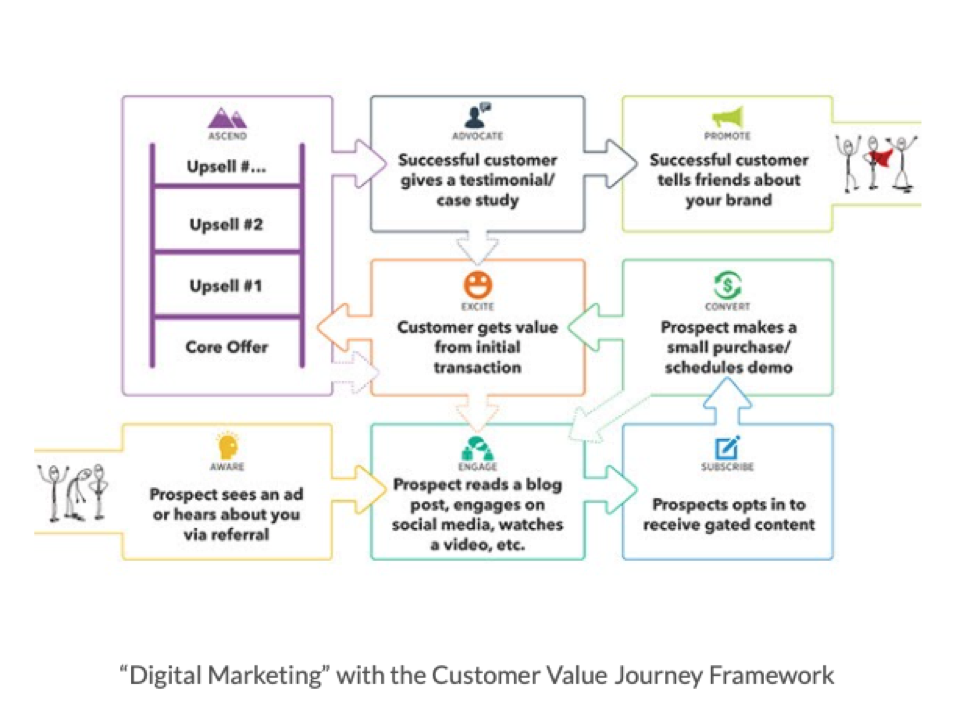 Anda sudah familiar dengan Perjalanan Nilai Pelanggan, proses 8 tahap untuk mengajak orang asing dan mengubahnya menjadi penggemar berat merek Anda. Kami telah menggunakan Perjalanan Nilai Pelanggan untuk membedakan diri kami dengan cara kami menyampaikan pemasaran digital (komoditas).