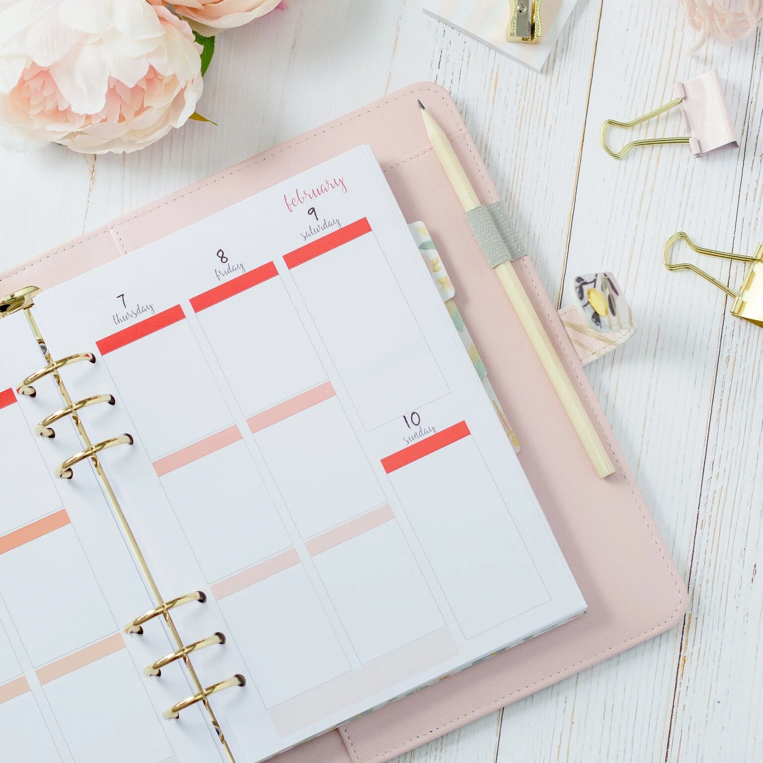 Jessica: Sekitar enam tahun yang lalu, saya jatuh ke dalam perencanaan sebagai hobi. Ada komunitas besar orang yang suka menggunakan perencana mereka sebagai hobi menyimpan memori atau membuat scrapbook. Menghiasnya dengan stiker, selotip washi, dan membuatnya cantik serta membantu menjaga diri Anda tetap teratur. Pada saat itu, saya menggunakan perencana Filofax, yang merupakan perencana cincin di mana Anda dapat mengambil halaman masuk dan keluar. Saya membeli banyak isi ulang perencana cetak yang dapat diunduh dari Etsy dan mencetaknya di rumah karena kertas yang disertakan dengan Filofax Anda cukup tipis dan membosankan. Banyak orang suka mengeluarkannya dan memasukkan sesuatu yang sedikit lebih kreatif ke dalamnya. Saya sangat frustrasi dengan sisipan yang dapat diunduh yang dapat dicetak ini karena sangat sulit untuk dicetak di rumah, saya akan membuang begitu banyak kertas, begitu banyak tinta di komputer saya, dan saya tidak dapat menemukan tata letak yang benar-benar bekerja untuk saya juga. Saya akhirnya berkata pada diri sendiri, "Saya sebenarnya hanya akan duduk dan mendesain tata letak saya sendiri. Saya akan mendesain sisipan perencana sempurna saya sendiri hanya untuk penggunaan saya sendiri."