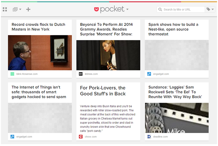 Pocket adalah salah satu aplikasi favorit saya. Ini dirancang untuk menyimpan konten menarik yang Anda temukan secara online : hanya dengan satu klik, halaman web dapat disimpan dalam jenis papan buletin pribadi di mana Anda dapat menetapkan tag dan mengarsipkan konten setelah Anda membacanya. Evernote juga menawarkan layanan serupa, tetapi tidak ada artinya jika dibandingkan. Kehadiran aplikasi seluler dan ekstensi Chrome memudahkan untuk menemukan konten di perangkat apa pun.