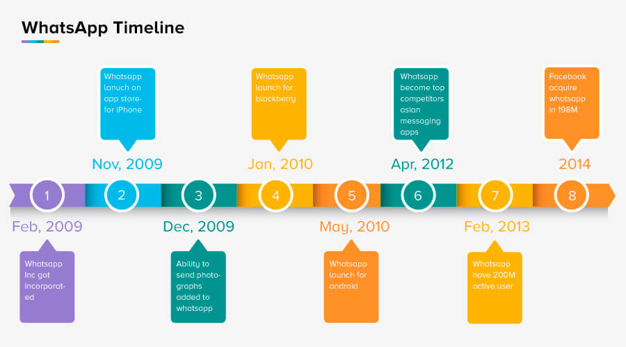 Melalui timeline ini, kita dapat melihat pertumbuhan luar biasa yang ditunjukkan WhatsApp selama ini. Saat memasuki pasar dunia, belum ada aplikasi yang menandingi WhatsApp. Aplikasi mitranya di Asia Tenggara, seperti WeChat, Viber, dll., sangat sukses dengan target audiens mereka, tetapi dunia barat tidak tersentuh.
