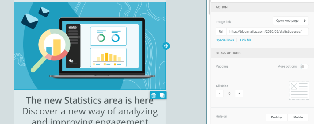 Berikut adalah trik kecil namun hebat dalam meningkatkan penggunaan seluler: fungsi untuk mengecualikan beberapa modul email agar tidak dilihat di perangkat seluler sementara tetap terlihat di desktop. Berikut cara melakukannya dengan platform MailUp: