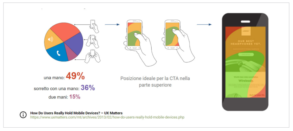 Praktik terbaik ini memenuhi cara unik berinteraksi dengan ponsel cerdas hanya dengan satu tangan , terutama ibu jari , yang bekerja di layar sementara jari lain mendukung perangkat.