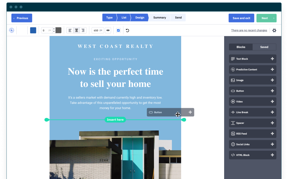 - Desainer email seret dan lepas: Anda tidak perlu menjadi ahli teknologi untuk mendesain email yang ramping dan bergaya. Menggunakan desainer email seret-dan-lepas ActiveCampaign, Anda dapat membuat kampanye yang indah dalam hitungan menit. Dan, jika Anda tidak ingin repot mendesain email, Anda bisa menggunakan template email yang sudah jadi.