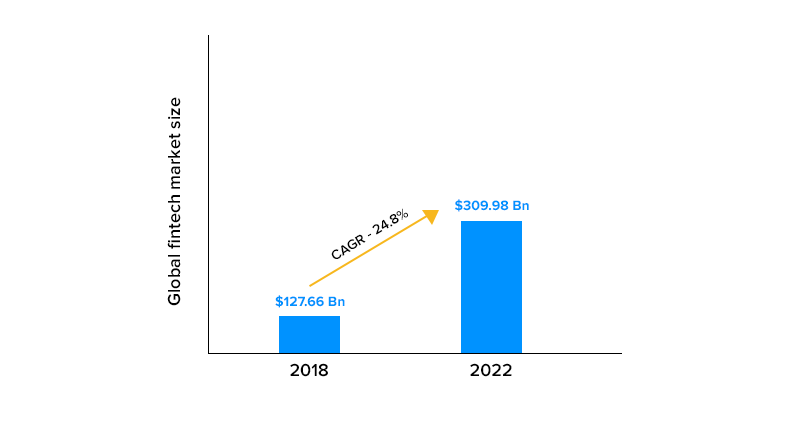 Dengan semua manfaat dan peluang tersebut, pasar fintech global diprediksi akan tumbuh secara eksponensial dan bernilai $309,98 Miliar pada tahun 2022.