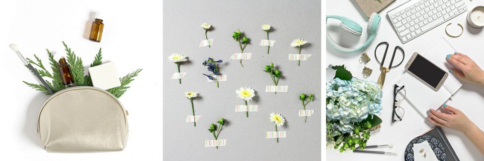 Jika produk Anda, katakanlah, kursus atau ebook tentang membuat rangkaian bunga, sepertinya mengambil foto rangkaian yang sudah jadi sudah cukup. Namun, jika Anda mempertimbangkan objek yang digunakan untuk membuat rangkaian bunga, Anda mungkin mulai berpikir tentang gunting, tali, vas, dan mungkin kendi berisi air. Tiba-tiba, saat kami mulai menambahkan karakter pendukung ini, cerita tentang produk dan pahlawan Anda mulai terbentuk.