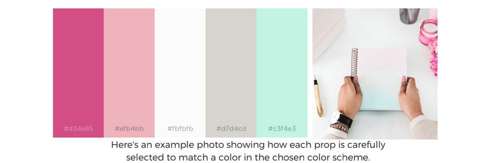 Sebagai seorang fotografer, berhati-hatilah dengan warna yang Anda gunakan sebelum memulai. Sama seperti seorang seniman akan memilih skema, Anda perlu memilih skema warna dan rencana untuk foto Anda sesuai dengan suasana hati, cerita, merek dan produk. Luangkan waktu sebelum Anda mengeluarkan kamera untuk memilih rona, corak, dan corak khas yang cocok dengan produk Anda. Ini bisa berupa nuansa hanya satu warna, hitam dan putih, atau perpaduan warna merek Anda sendiri yang menyenangkan.