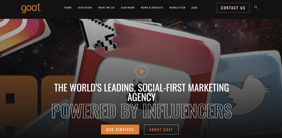 The Goat Agency adalah perusahaan global yang bergerak di bidang pemasaran yang mengutamakan sosial, didorong oleh komitmen teguh mereka dalam menyampaikan kampanye media sosial yang berpengaruh dan memenangkan penghargaan. Sejak didirikan pada tahun 2015, Goat telah merancang pendekatannya dengan cermat untuk menggabungkan strategi media sosial jangka panjang dan kampanye influencer berbasis data, sehingga mendapatkan reputasinya dengan mempromosikan peningkatan keterlibatan dan kesadaran merek. Dengan tim ahli yang memiliki banyak aspek, Goat melampaui paradigma pemasaran influencer tradisional, memandang pemasaran influencer dan media sosial sebagai saluran pemasaran yang komprehensif dan lengkap .