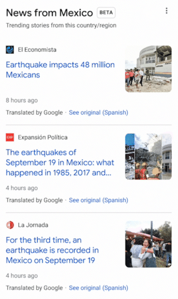 Google akan meluncurkan awal tahun depan cara untuk menemukan liputan berita yang diterjemahkan untuk berita lokal dan internasional. Menggunakan terjemahan mesin, Google Penelusuran akan menampilkan tajuk berita yang diterjemahkan untuk hasil berita dari penerbit dalam bahasa lain.