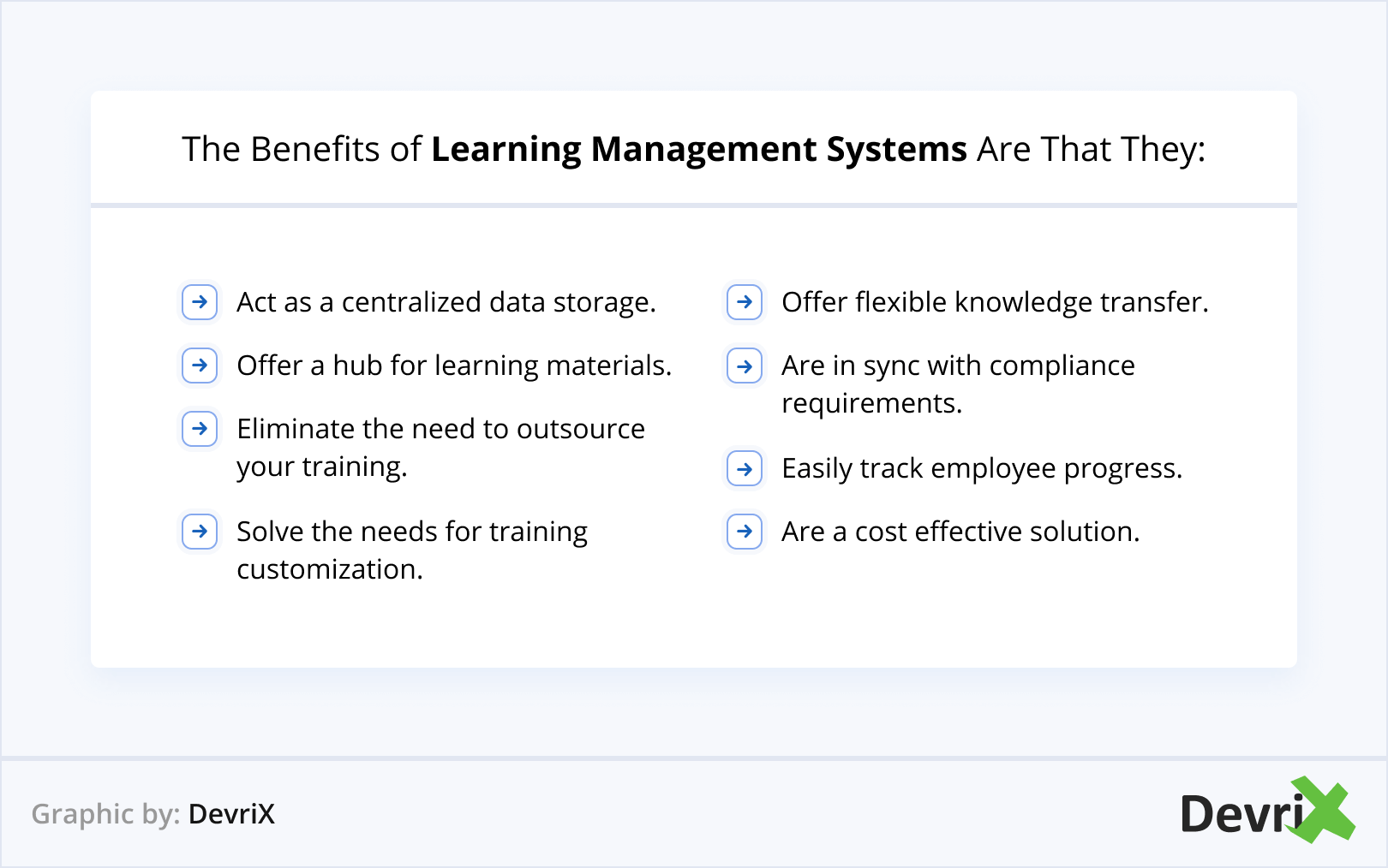 Selain itu, LMS dapat membantu menciptakan kebiasaan kerja yang lebih baik dalam tim Anda. Ini dapat mendukung penetapan tujuan SMART, sehingga membantu individu memahami manfaat dan implikasi dari tujuan jangka pendek dan jangka panjang. Ini dapat bertindak sebagai panduan untuk perencanaan strategis dan pengambilan keputusan, baik di tingkat organisasi maupun pribadi. Hasilnya, Anda dapat mengatur berbagai proses bisnis, meningkatkan kinerja, mentransfer pengetahuan, dan menjamin konsistensi di seluruh operasi.