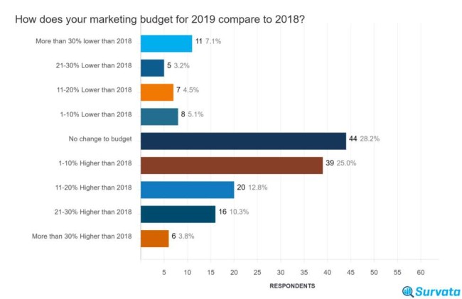 Survei kami menemukan bahwa meskipun banyak perusahaan berencana untuk mempertahankan anggaran pemasaran mereka sama seperti tahun sebelumnya, sebagian besar dari mereka berencana untuk meningkatkan investasi pemasaran mereka: