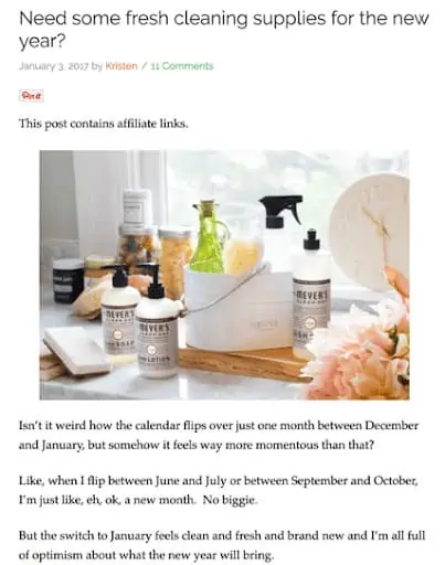 Ambil inspirasi dari posting unik yang dipublikasikan di blog, The Frugal Girl. Karena pembersihan ada di benak orang-orang selama Tahun Baru, posting musiman ini adalah cara cerdas untuk menambahkan tautan afiliasi yang relevan.