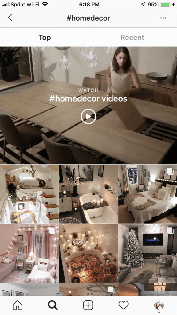 Di Instagram juga sama. Pencarian untuk #homedecor menunjukkan posting "top" ini: