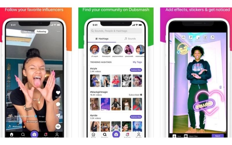 Diluncurkan sebelum TikTok, aplikasi ini kehilangan sedikit pesonanya sejak kedatangan TikTok, yang saat itu dikenal sebagai Musical.ly. Namun, aplikasi yang berfokus pada video sinkronisasi bibir yang menyenangkan & menarik ini masih menikmati lebih dari 100 juta pemasangan. Seperti TikTok, Dubmash memiliki perpustakaan suara besar termasuk kutipan TV & film dan memungkinkan pengguna untuk menambahkan stiker dan teks ke video mereka, menjadikannya lebih menarik.