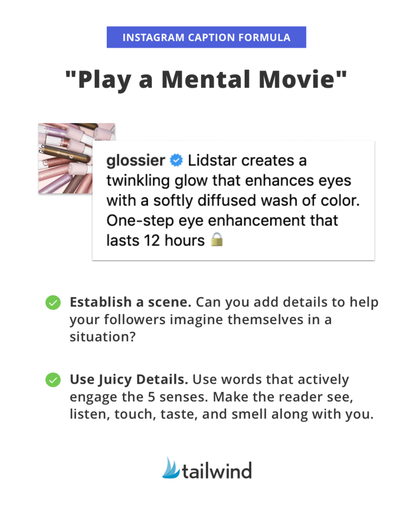 - Membangun sebuah adegan. Bisakah Anda menambahkan detail untuk membantu pengikut Anda membayangkan diri mereka dalam suatu situasi? (“Ini jam 6:31 pagi, saya memegang latte panas yang mengepul di Starbucks sambil membungkuk untuk menulis posting blog berikutnya ini…”)