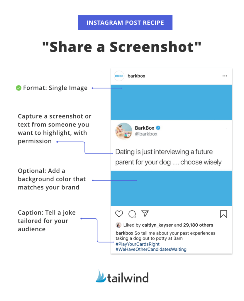 Inilah satu strategi cepat: Banyak tangkapan layar berfungsi karena terasa seperti lelucon orang dalam yang disesuaikan untuk pemirsa tertentu. Jika Anda dapat membuat lelucon atau referensi yang terasa hanya untuk mereka , itu sering kali merupakan pelengkap yang bagus untuk tangkapan layar juga.