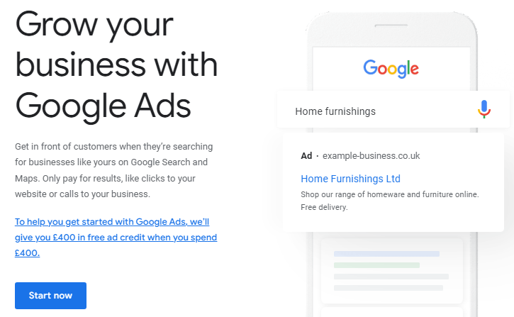 Cukup navigasikan ke situs web Google Ads dan klik “mulai sekarang”. Anda kemudian akan menjawab beberapa pertanyaan tentang bisnis Anda dan memberikan informasi penagihan.