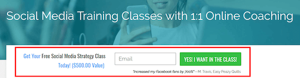 Di beranda saya, saya membuat penawaran untuk kelas Strategi Media Sosial gratis, seperti yang ditunjukkan di bawah ini: