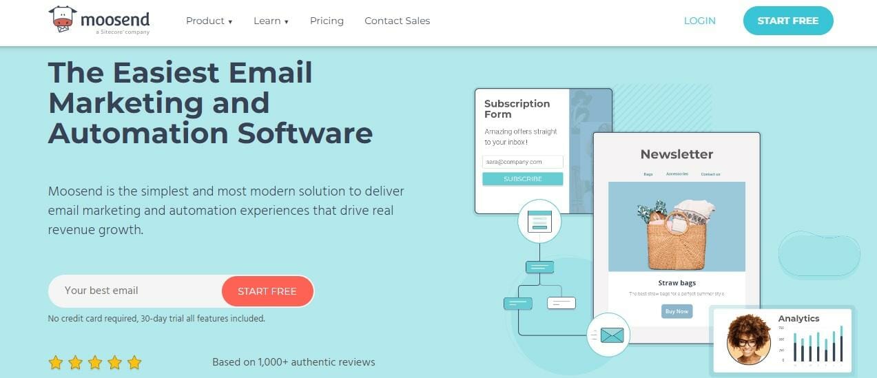 Moosend adalah salah satu platform email semacam itu. Mereka adalah pemasaran email berbasis cloud dan perangkat lunak otomasi untuk mengelola semua kampanye email Anda untuk membantu Anda meningkatkan upaya perolehan prospek.